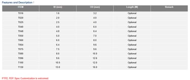 ● Key Features of Teflon Tubes